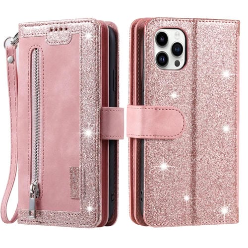 Para Xiaomi Redmi 13 4G Funda de Cuero para Teléfono con Bolsa con Cremallera y Nueve Tarjetas con Cordón (Rosa)