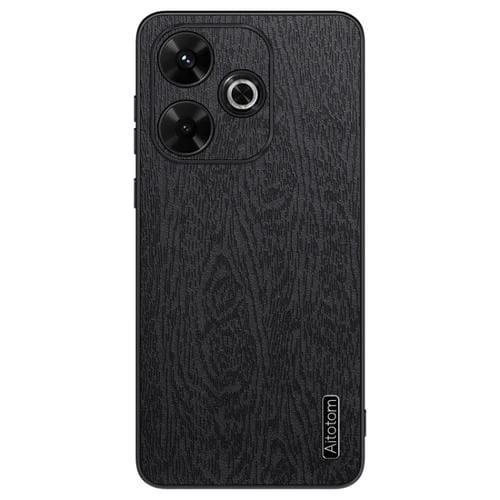 Para Xiaomi Redmi 13 4G Funda de Teléfono a Prueba de Golpes de Cuero con Corteza de Árbol (Negro)