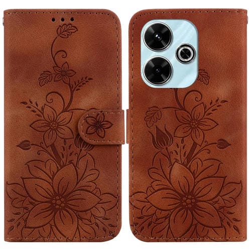 Para Xiaomi Redmi 13 4G Lily Funda de Cuero para Teléfono En Relieve (Marrón)