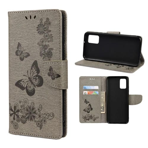 Para Xiaomi Redmi Note 11 Mariposa Funda de Cuero Horizontal En Relieve de Cuero Horizontal con Ranura para Tarjeta y Soporte (Gris)