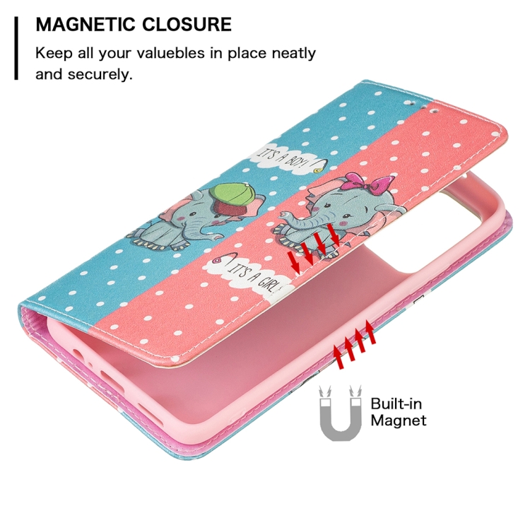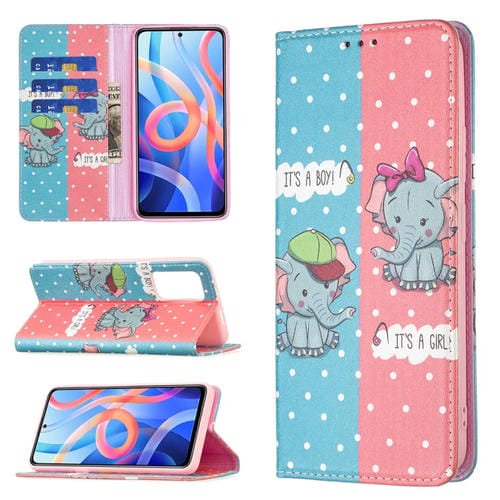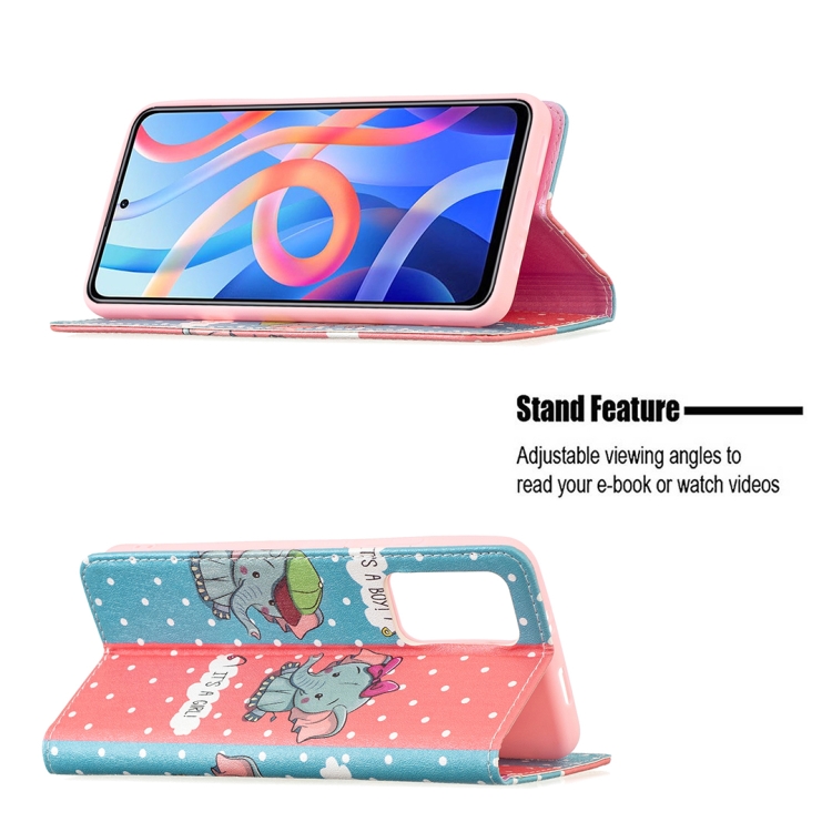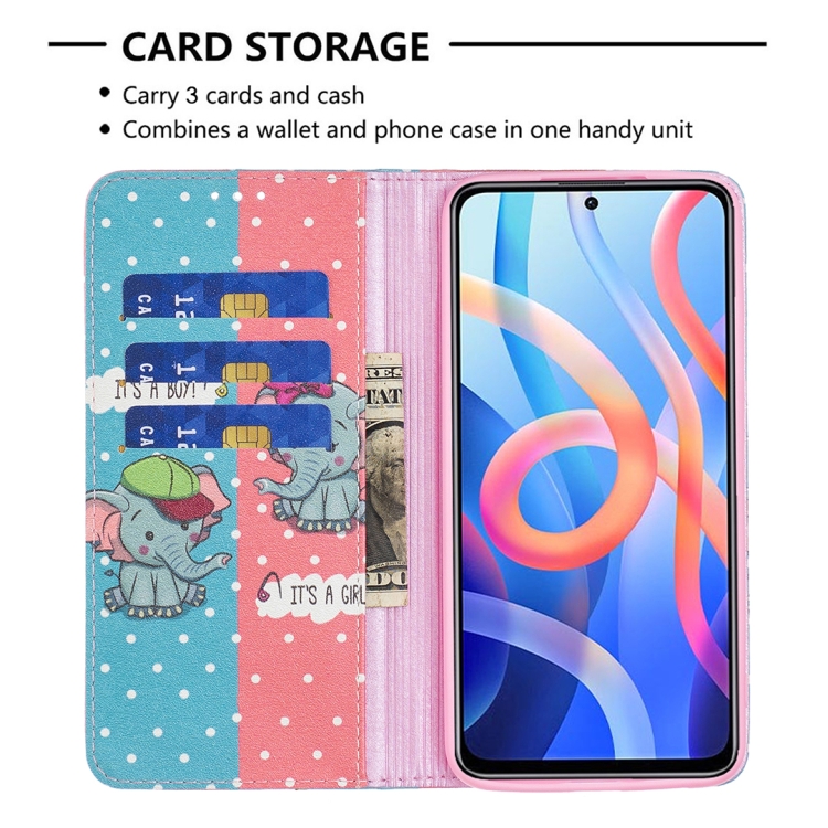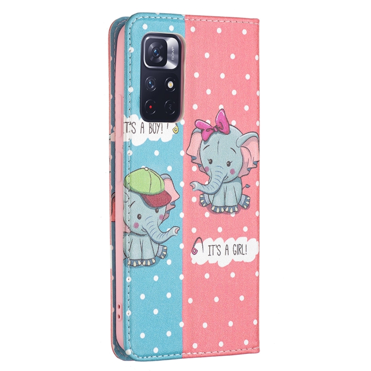 Para Xiaomi Redmi Note 11 Patrón de Dibujo de Color Funda Telefónica de Cuero de Pu Magnética Invisible (Elefante)