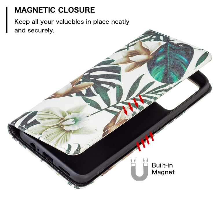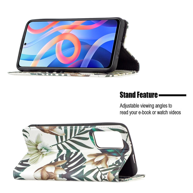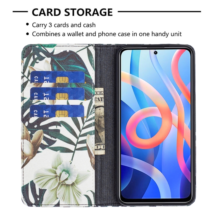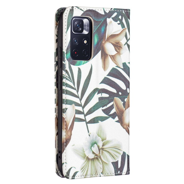 Para Xiaomi Redmi Note 11 Patrón de Dibujo de Color Invisible Magnetic Pu Teléfono de Cuero (Hojas Rojas)