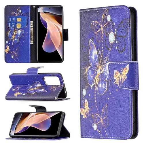 Para Xiaomi Redmi Note 11 Pro / 11 Pro + Cuestro de Cuero de Cuero de Dibujo de Color (Mariposa Púrpura)