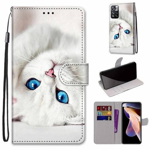 Para Xiaomi Redmi Note 11 Pro / 11 Pro + Dibujo de Colores Textura Cristrada Cristrada Horizontal Flip Culeno de Cuero de Cuero con Titulares y TaRJetes Slots & Wallet & Lanyard (Gatito Blanco)