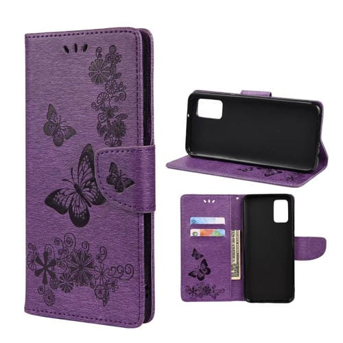 Para Xiaomi Redmi Note 11 Pro Butterfly Funda de Cuero Horizontal Horizontal Flip de Cuero con Ranura para Tarjeta y Soporte (Púrpura)