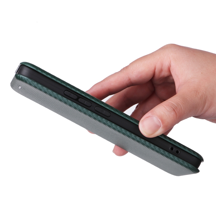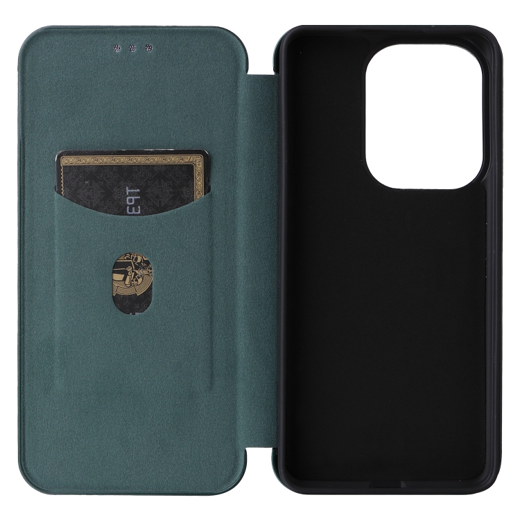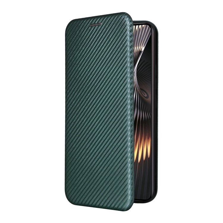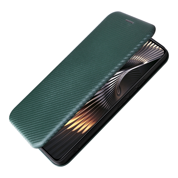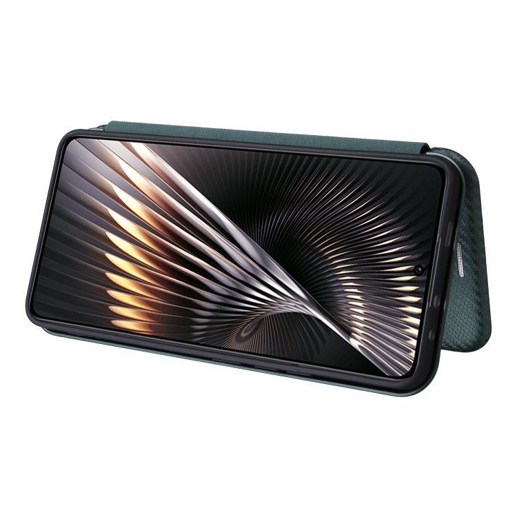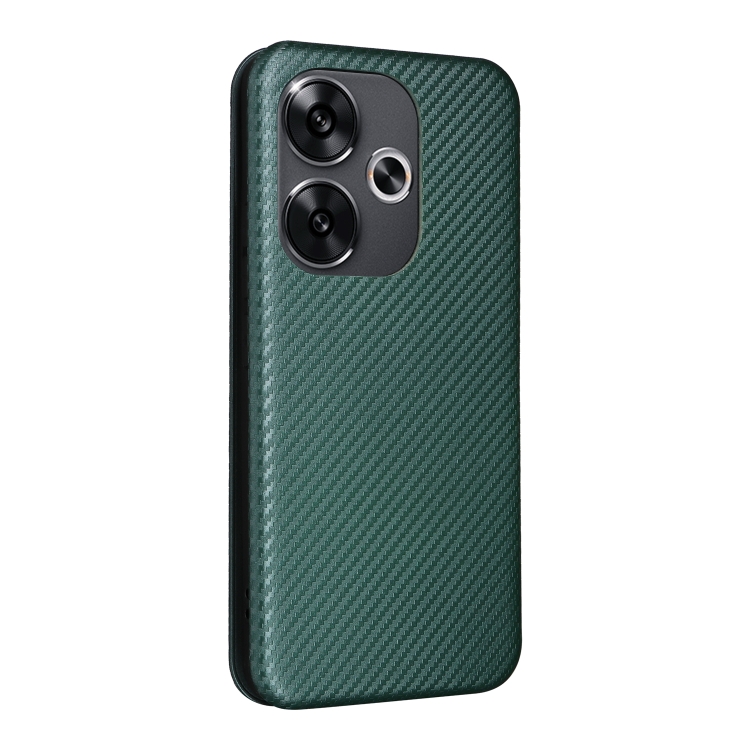Para Xiaomi Redmi Turbo 3 / Poco F6 Funda de Cuero con Tapa con Textura de Fibra de Carbono (Verde)