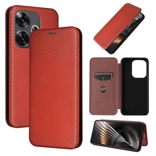 Para Xiaomi Redmi Turbo 3 / Poco F6 Funda de Teléfono de Cuero con Tapa con Textura de Fibra de Carbono (Marrón)