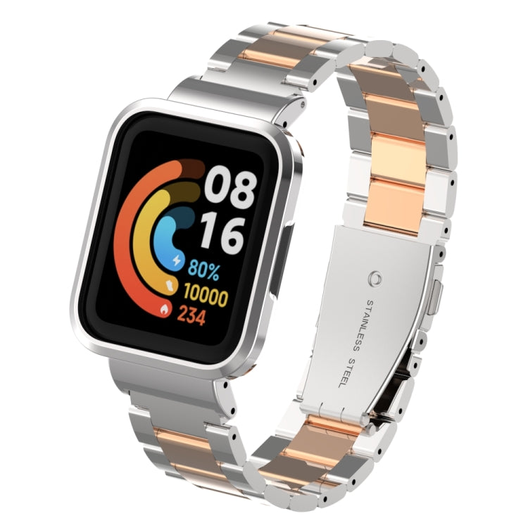 Para Xiaomi Redmi Watch 2 banda de reloj de metal de tres cuentas (plata + oro rosa)