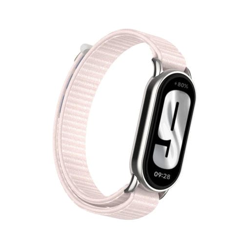 Conector de Metal + Correa con Cierre de Velcro de Nailon para Xiaomi Smart Band 9/8 (Polvo de Perla)