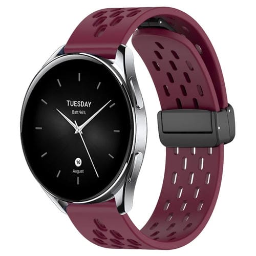 Correa de Silicona para Xiaomi Watch S2 46mm 22mm con Cierre Magnético Plegable (Rojo Vino)
