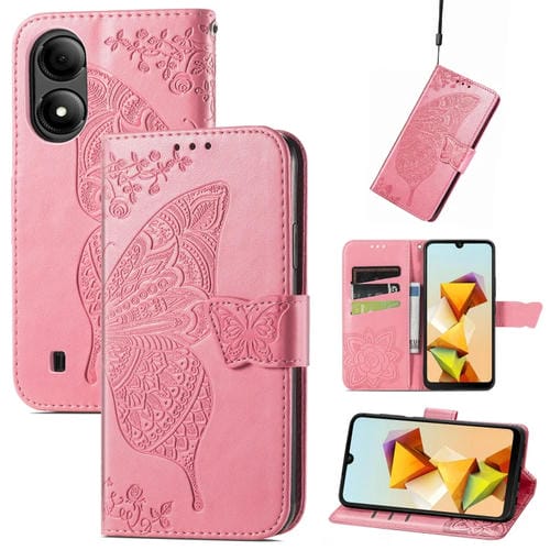 Funda para ZTE Blade A33S Cuero con Relieve Flor y Mariposa (Rosa)
