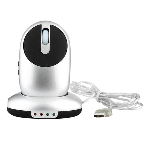 - 1x Ratón Óptico ReCargable Inalámbrico Mz-012 2.4G 1200 DPI con 3 Puertos USB Hub y Base de Carga (Plateado)