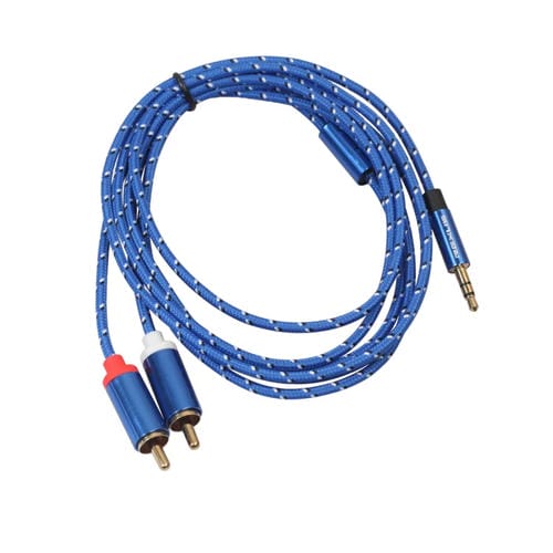 Cable de Audio Rexlis 3610 Trenzado de Algodón Azul Macho 3,5mm a Doble RCA Chapado en Oro 1,8 m