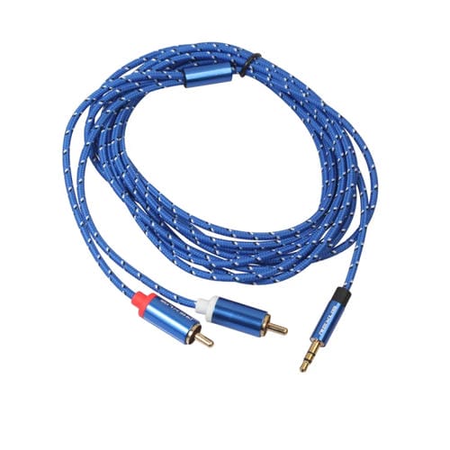 Cable de Audio Rexlis 3610 Trenzado de Algodón Macho 3,5mm a Doble RCA Chapado en Oro (Azul) 3 m