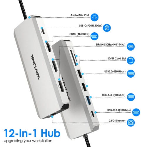 Adaptador Multipuerto de Monitor Wavlink Umd306 Triple Dual 8K 12 en 1